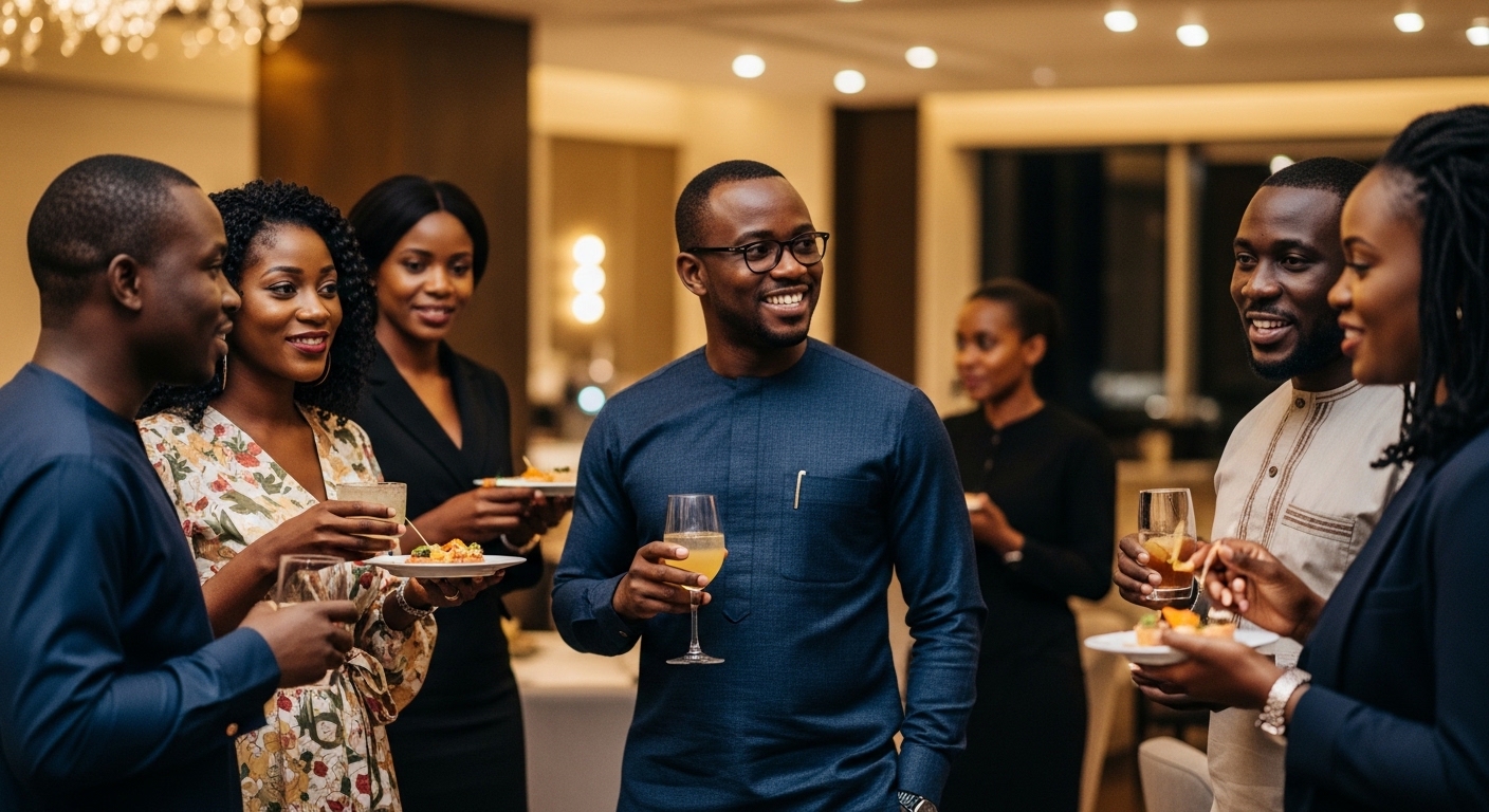 Format cocktail dînatoire : speed networking structuré (3 min × 10 rounds) puis salons d'approfondissement.